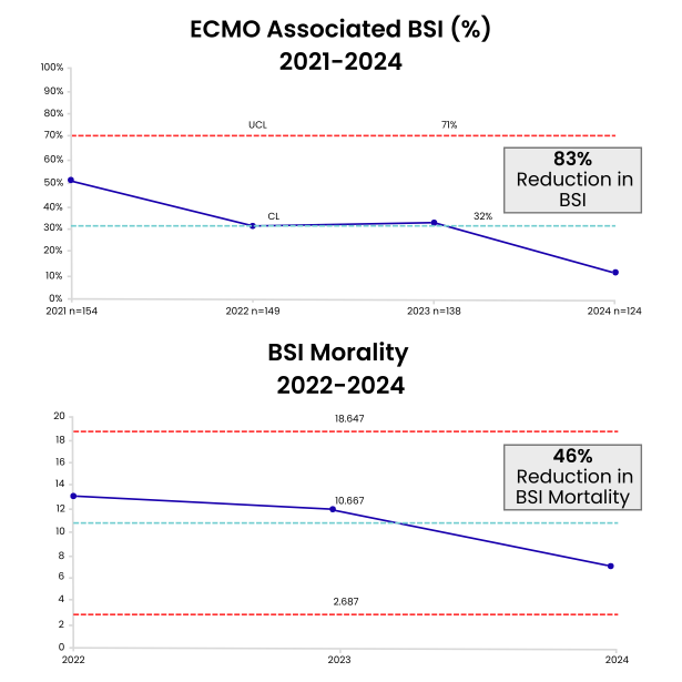 Example: A large ECMO program utilized ORCA to help identify and subsequently improve their high bloodstream infections over 2 years.
